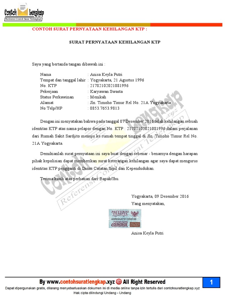 Contoh Surat Pernyataan Kehilangan Berbagai Dokumen Penting Pdf